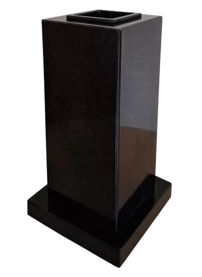 Ypatingai prabangi, rankų darbo, pagaminta iš juodo granito kapų vaza.