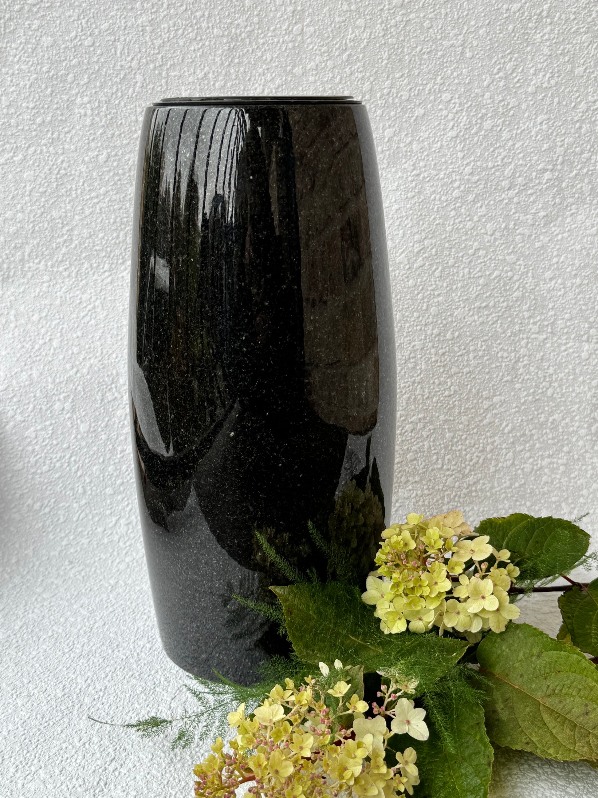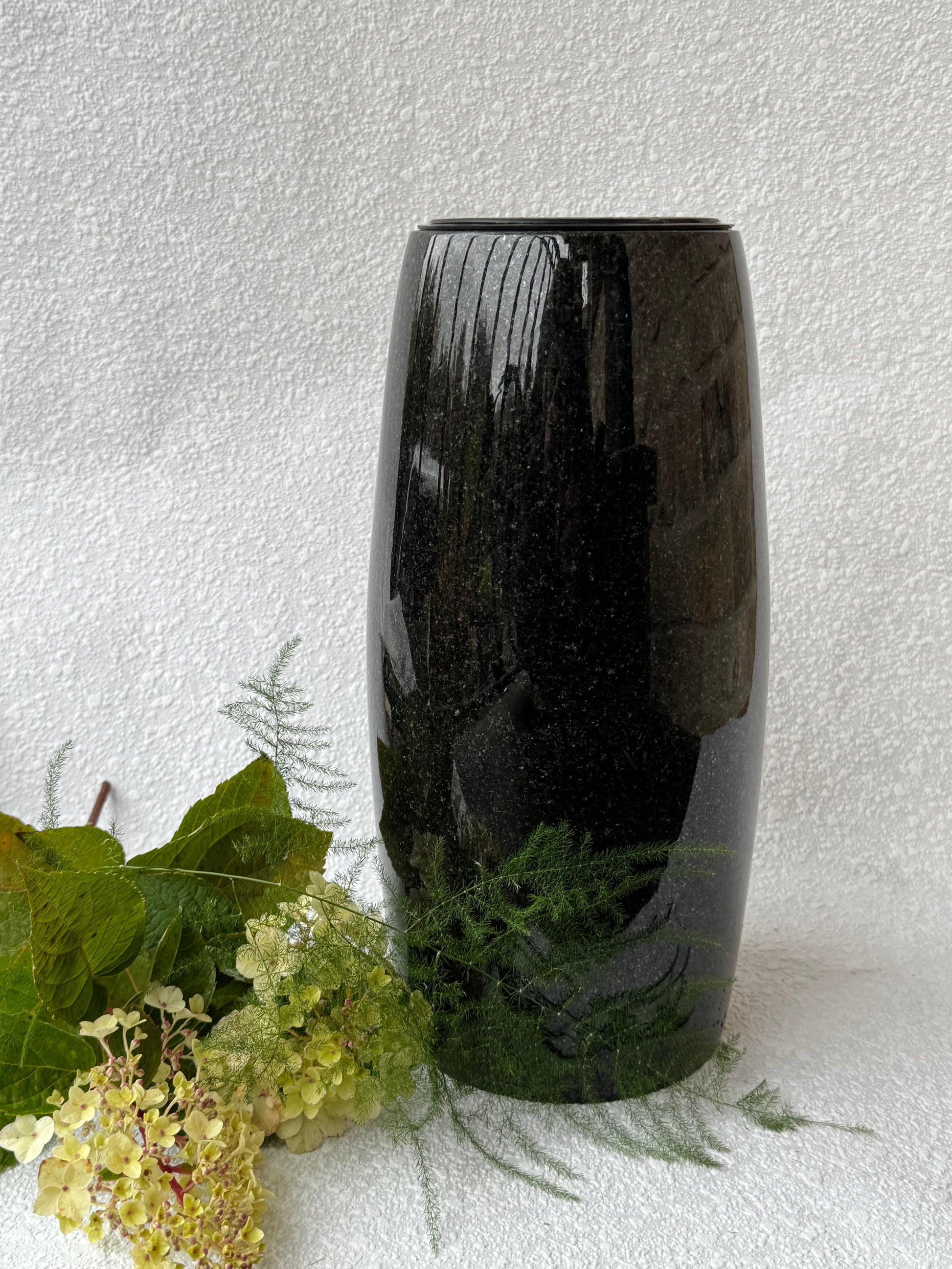 Ypatingai prabangi, rankų darbo, pagaminta iš juodo granito kapų vaza.