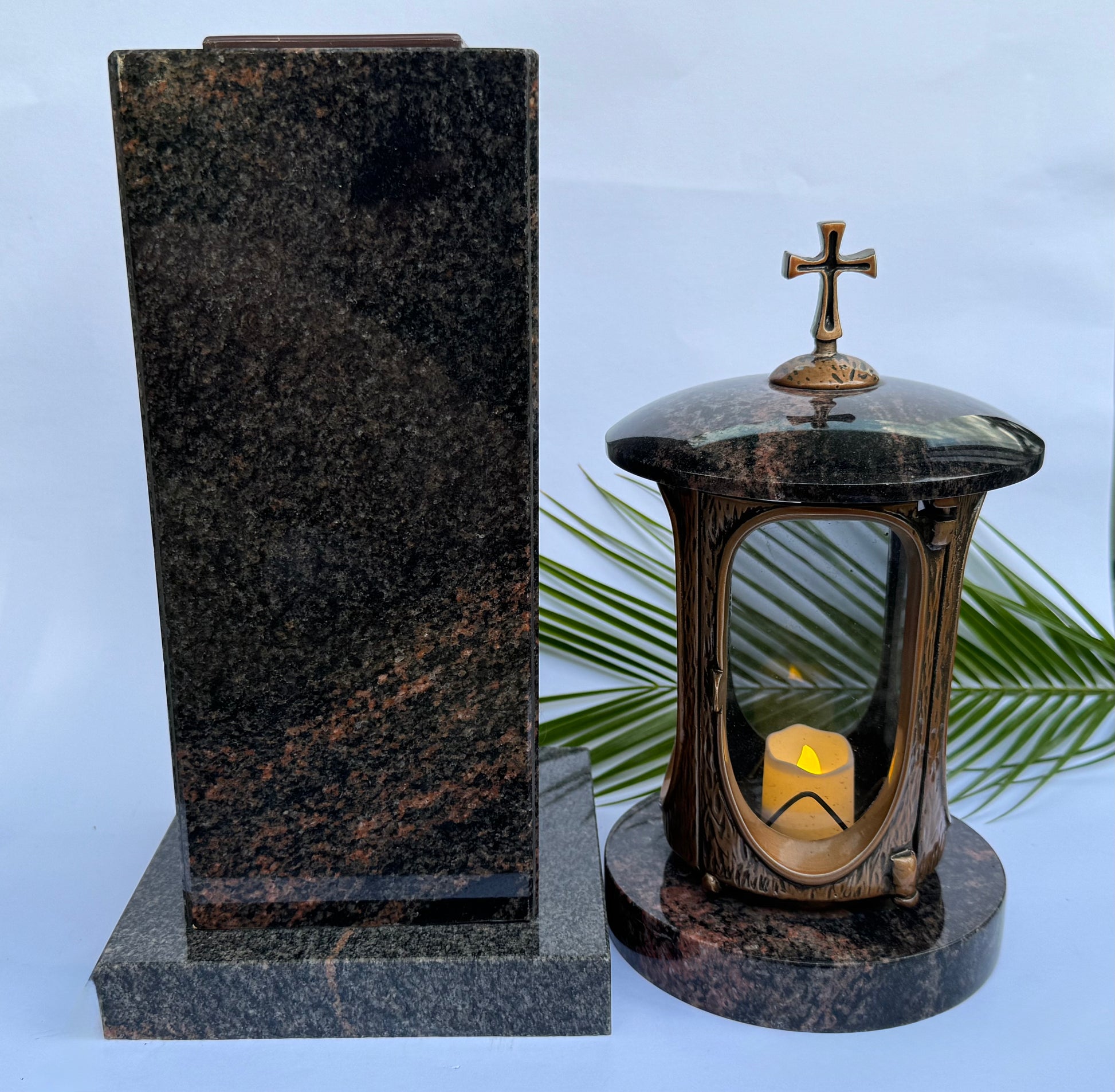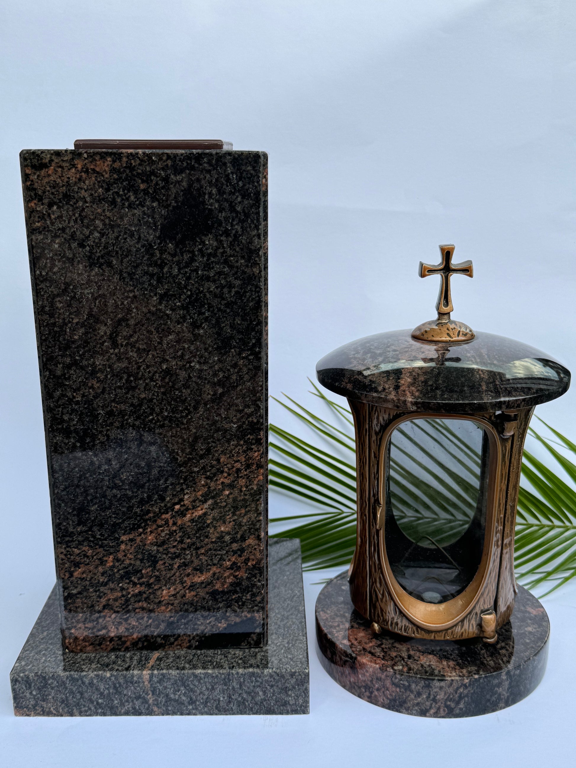 Ypatingai prabangus, kokybiškas kapų žibinto bei vazos rinkinys (Auroros akmuo).